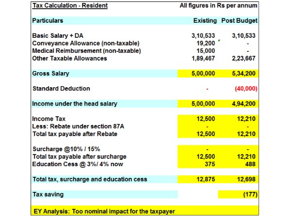 కాగా, 2018-19 ఆర్థిక సంవత్సరంలో రవాణా, వైద్య ఖర్చులకు బదులుగా పన్ను చెల్లించవలసిన ఆదాయంపై 40,000 రూపాయల ప్రామాణిక మినహాయింపు.