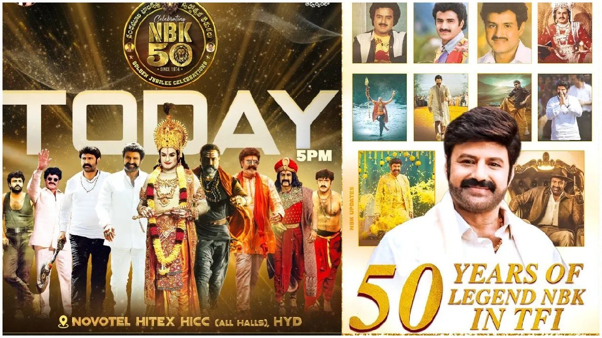 నందమూరి నటసింహం బాలకృష్ణ సినీ పరిశ్రమలోకి ప్రవేశించి ఆగస్టు 30వ తేదీకి 50 సంవత్సరాలు పూర్తిచేసుకున్నారు. ఇటువంటి అరుదైన సందర్భాన్ని పురస్కరించుకొని తెలుగు పరిశ్రమ ఆధ్వర్యంలో బాలయ్య స్వర్ణోత్సవ సంబరాలను హైదరాబాద్ నోవాటెల్ లో ఘనంగా జరిపారు. ఈ వేడుకకు సినీ, రాజకీయ రంగాలకు చెందిన ప్రముఖులు హాజరయ్యారు. బాలయ్య మరో 100 సంవత్సరాలు ఇలాగే సినిమాల్లో నటించాలని, వైద్యరంగంతోపాటు ఎమ్మెల్యేగా కూడా సేవలందించాలని ప్రముఖులంతా అభిలషించారు.