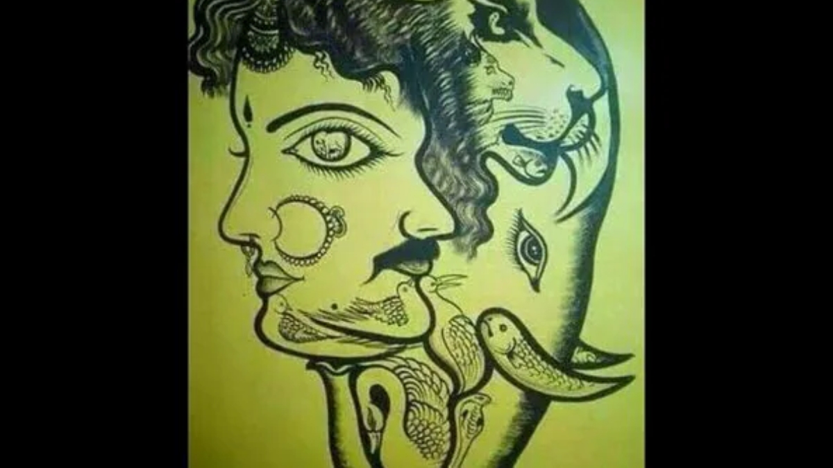 చిత్రాన్ని జాగ్రత్తగా పరిశీలిస్తే మనిషి తల ఆకారంలో పులి, ఏనుగు ముఖాలు కలిసినట్లు కనిపిస్తాయి. కానీ ఇవి అసలు దృష్టిని మళ్లించడానికి రూపొందించిన ప్రధాన ఆకృతులు మాత్రమే. చిత్రంలో మరింత లోతుగా గమనిస్తే చిన్నచిన్న ఆకారాల రూపంలో అనేక జంతువులు చాకచక్యంగా దాచబడ్డాయి.