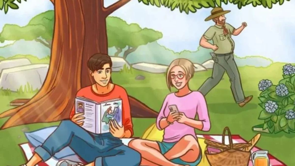 చిత్రంలోని ఐదు పుస్తకాలను గుర్తించడం చాలా మందికి కష్టంగా అనిపిస్తే, వాటి స్థానాల గురించి చిన్న సూచనలు ఉన్నాయి. మొదటి పుస్తకం కూర్చున్న వ్యక్తి చేతుల్లో కనిపిస్తుంది. రెండవ పుస్తకం మహిళ పక్కన ఉన్న బుట్టలో ఊదా రంగు అట్టతో దాగి ఉంటుంది. మూడవ పుస్తకం వెనుక నడుస్తున్న వ్యక్తి జేబులో ఉంది. నాలుగో పుస్తకం పువ్వుల పక్కన ఆకుపచ్చ రంగులో ఉంచబడింది. చివరిది గోధుమ రంగు అట్టతో చెట్టుకు ఎడమ వైపున నేలపై ఉంటుంది.