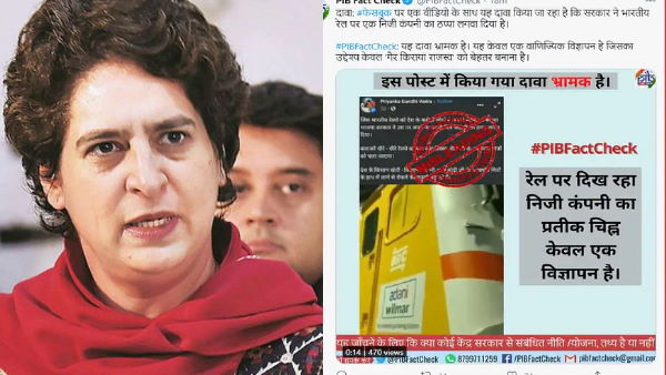 న్యూఢిల్లీ: భారతీయ రైల్వేలను కేంద్ర ప్రభుత్వం ఒక ప్రైవేట్ సంస్థకు అప్పగించిందంటూ కాంగ్రెస్ నేత ప్రియాంకా గాంధీ సోషల్ మీడియాలో షేర్ చేసిన పోస్టుపై కేంద్ర ప్రభుత్వ సమాచారా సంస్థ అయిన ప్రెస్ ఇన్ఫర్మేషన్ బ్యూరో వివరణ ఇచ్చింది. ప్రియాంకాగాంధీ షేర్ చేసిన ఫేస్బుక్ పోస్టు స్క్రీన్ షాట్ను తిరిగి పోస్టు చేస్తూ ఇది తప్పుడు సమాచారం అని వివరణ ఇచ్చింది. రైల్వే సంస్థను ఏ ప్రైవేట్ సంస్థకు కేంద్ర ప్రభుత్వం అప్పగించడం లేదని స్పష్టం చేసింది. ఇలాంటి పోస్టులను షేర్ చేసి ప్రజలను ఆందోళనకు గురిచేయొద్దంటూ వెల్లడించింది. ఇది కేవలం రెవిన్యూను మెరుగుపరచకోవడం ఇచ్చిన అడ్వర్టయిజ్మెంట్ అని స్పష్టం చేసింది కేంద్రం ప్రభుత్వం.