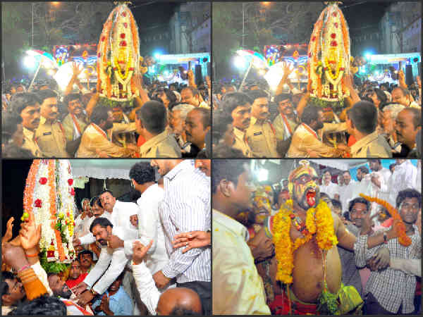లంగర్హౌస్ చౌరస్తాలోని అమ్మవారి భారీతొట్టెల ఊరేగింపులో తెలంగాణ రాష్ట్ర హోంశాఖ మంత్రి నాయిని నర్సింహ్మా రెడ్డి, నగర పోలీస్ కమిషనర్ మహేందర్ రెడ్డితో పాటు దేవాదాయ శాఖ కమిషనర్ రామకృష్ణారావు అమ్మవారికి ప్రత్యేక పూజలు నిర్వహించి భారీ తొట్టెల ఊరేగింపును ప్రారంభించారు.