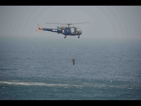 పది నిమిషాలకు పైగా ఓకేచోట హెలికాప్టర్ను నిలిపి అందులోంచి మెరుపువేగంతో తాళ్ల సాయంతో సిబ్బంది సముద్రంలోకి దిగిన తీరు గగుర్పాటుకు గురి చేసింది. అంతకు ముందు మూడు యుద్ధ నౌకల చుట్టూ హెలికాప్టర్ తిరగి హెచ్చరికలు పంపడం, పరిస్థితిని సమీక్షించడం ఆకట్టుకుంది.