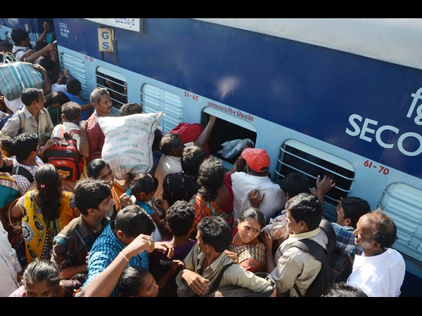 రైల్వే స్టేషన్ చేరుకుంటున్న ప్రయాణికులు