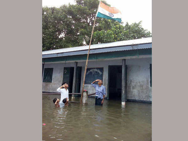 అసోంలోని ధుబ్రి ప్రాంతంలోని నష్కర ప్రాథమిక పాఠశాలకు చెందిన ఈ చిత్రం సోషల్ మీడియాలో లక్షల్లో లైక్స్ తో వైరల్ గా మారిపోయింది. ఇందులో ఇద్దరు చిన్నారులు భుజాల లోతు నీళ్లలోను, మరో అతను నడుం లోతు నీళ్లలోను, ఇంకో ఉపాధ్యాయుడు మోకాళ్ల లోతు నీళ్లలో ఉండి జెండాకు సెల్యూట్ చేశారు.