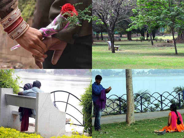 ప్రేమికుల రోజు ఓ జంట ఇలా చాటుమాటుగా తమ ప్రేమకబుర్లకు తెర తీసింది. ప్రియదర్శిని పార్కులో సెలయేరు పక్కన హాయిగా సేద దీరుతూ..