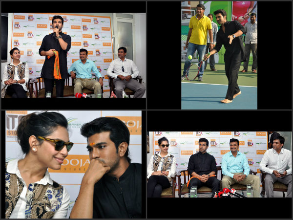 మీర్జా టెన్నిస్ అకాడమీలో ఐటిఎఫ్ మహిళా టెన్నిస్ టోర్నమెంట్ అకాడమీలో రామ్ చరణ్ తేజ అలా కనిపించారు.