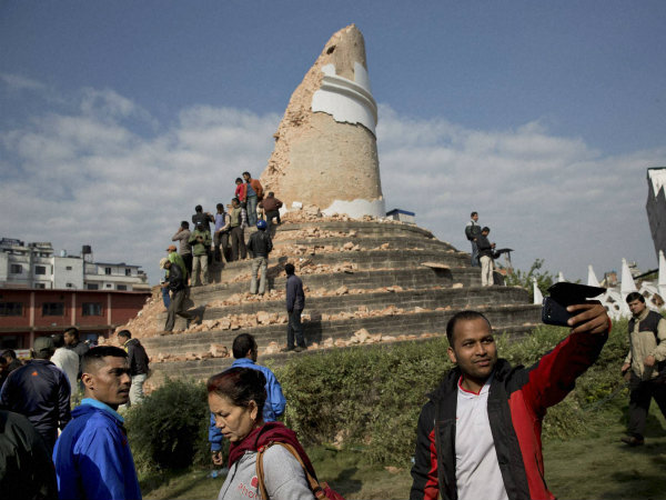 తాజా భూకంప తీవ్రత ధాటికి కాఠ్మాండులో కుప్పకూలిన ప్రఖ్యాత ధర్హరా టవర్ ముందు స్థానిక యువకులు, పర్యాటకులు సెల్ఫీలు, ఫొటోలతో హోరెత్తిస్తున్నారు. ఇంతటి విషాదంలోనూ కూలిన టవర్ ముందు నవ్వుతూ సెల్ఫీలు తీసుకోవడంపై పలువురు అభ్యంతరం వ్యక్తం చేస్తున్నారు.