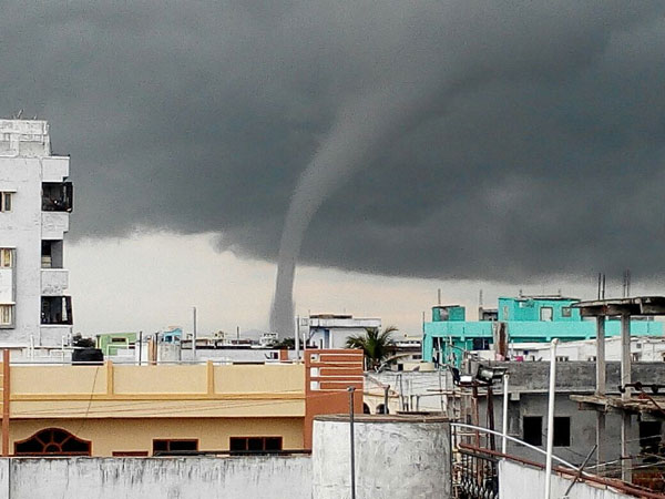 అరుదైన దృశ్యం: కరీంనగర్లో టోర్నడో కలకలం(వీడియో)