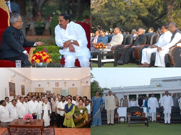 హైదరాబాదులోని రాష్ట్రపతి నిలయంలోని ఏర్పాటు చేసిన టీ పార్టీలో ప్రణబ్ ముఖర్జీతో ముఖ్యమంత్రి కిరణ్ కుమార్ రెడ్డి, మంత్రులు టిజి వెంకటేష్, జానా రెడ్డి, శ్రీధర్ బాబు, గవర్నర్ నరసింహన్ దంపతులు తదితరులు.