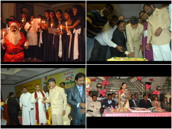 తెలుగుదేశం పార్టీ అధ్యక్షుడు నారా చంద్రబాబు నాయుడు సోమవారంనాడు పార్టీ కార్యాలయం ఎన్టీఆర్ ట్రస్టు భవన్లో క్రిస్మస్ వేడుకల్లో పాల్గొన్నారు. తెలంగాణ రాష్ట్ర సమితి (తెరాస) అధ్యక్షుడు కె. చంద్రశేఖర రావు తనయ, తెలంగాణ జాగృతి అధ్యక్షురాలు కల్వకుంట్ల కవిత తెలంగాణ భవన్లో జరిగిన క్రిస్మస్ వేడుకల్లో పాల్గొన్నారు.