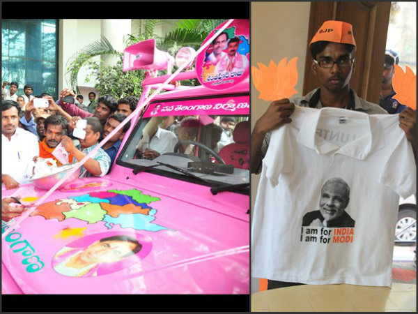 ఇదిలావుంటే, తెలంగాణలో తెరాసకు తమకూ మధ్యే పోటీ ఉంటుందనే ధీమా వ్యక్తం చేసిన తెలంగాణ బిజెపి అధ్యక్షుడు జి. కిషన్ రెడ్డి ప్రధాని అభ్యర్థి నరేంద్ర మోడీ టీ షర్టులను విడుదల చేశారు. టీ షర్టులపై నరేంద్ర మోడీ పేరు రాసి ఉంది.