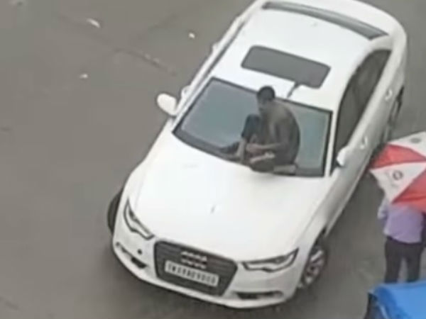 ముంబై వరదల్లో ఇదో వింత: కారుపై ఎక్కి అతనేం చేశాడంటే?(వీడియో)