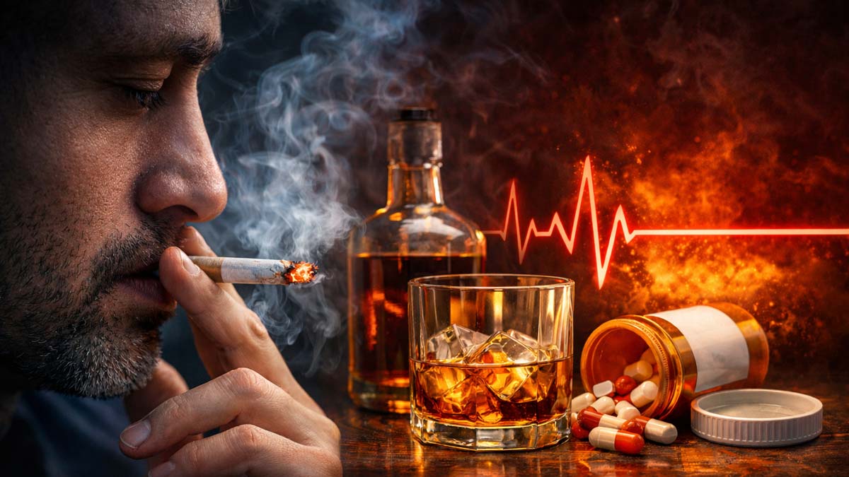 దీర్ఘకాలిక మద్యపానం వల్ల కాలేయ సిర్రోసిస్ వంటి సమస్యలు తలెత్తుతాయి. దీర్ఘకాలిక ధూమపానం వల్ల బ్రోన్కైటిస్, ఎంఫిసెమా, గుండె జబ్బులు, స్ట్రోక్ వంటి సమస్యలను ఎదుర్కోవాల్సి వస్తుంది. యువకులు, మధుమేహం ఉన్న వారు, శ్వాసకోశ సమస్యలతో బాధపడే వారికి ఇవి మరింత హానిని కలిగిస్తాయి. యువకులు చిన్న వయసులోనే వీటిని అలవాటు చేసుకోవడం వల్ల వ్యసనంగా మారడంతో పాటు తీవ్ర అనారోగ్య సమస్యలను ఎదుర్కోవాల్సి వస్తుందని నిపుణులు హెచ్చరిస్తున్నారు.