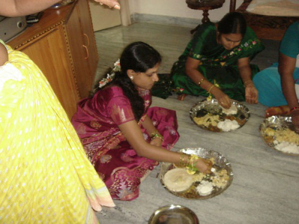 స్త్రీలందరూ తలంటి పోసుకుంటూరు, వేళ్లకు, కాలి గోళ్లకు గోరింటాకు పెట్టుకుంటారు.
