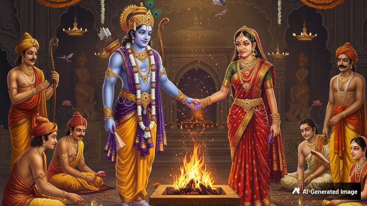 వాల్మీకి రామాయణం ప్రకారం, రాముడి జాతకంలో ఐదు గ్రహాలు ఉచ్చ స్థితిలో ఉన్నాయి. కర్కాటక లగ్నంలో చంద్రుడు, గురువు కలిసి ఉండటం వల్ల 'గజకేసరి యోగం' ఏర్పడింది. ఈ అద్భుతమైన ఖగోళ స్థితి లోక కల్యాణానికి సంకేతం. అందుకే నేటికీ భద్రాచల క్షేత్రంలో గానీ, అయోధ్యలో గానీ సీతారాముల కళ్యాణాన్ని సరిగ్గా మధ్యాహ్నం 12 గంటలకే నిర్వహిస్తారు. ఇది కేవలం ఒక వివాహ వేడుక మాత్రమే కాదు, అధర్మంపై ధర్మం సాధించిన విజయానికి నాంది.