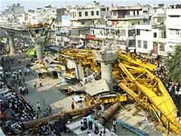 ముంబయి: మెట్రో రైలు వంతెనల నిర్మాణాలు ఇంకా వికటిస్తూనే ఉన్నాయి. రెండు రోజుల క్రితం ఢిల్లీలో నిర్మాణంలో మెట్రో రైలు వంతెన కూలిన ఘటన మరచిపోకముందే ముంబైలో మరో ఘటన చోటు చేసుకుంది. సబర్బ్ ప్రాంతంలో నిర్మిస్తున్న మెట్రో రైలు వంతెన పిల్లర్ కుప్పకూలింది. అయితే ఈ ఘటనలో ఎటువంటి ప్రాణనష్టం జరగలేదు. అక్కడకు చేరుకున్న అధికారులు శిధిలాలను తొలగిస్తున్నారు. దీనిపై మెట్రో రైలు అధికారులు మాట్లాడుతూ దీనిపై విచారణకు ఆదేశిస్తున్నట్లు చెప్పారు. మరోవైపు ఎడతెరపి లేకుండా పడుతున్న వర్షాలు ముంబైను అతలాకుతలం చేస్తున్నాయి.