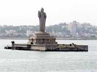 హుస్సేన్ సాగర్ లో పడిపోయిన కారు: ప్రయాణికులు సురక్షితం