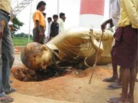 మంత్రి డిఎల్ నియోజకవర్గంలో వైయస్ విగ్రహ దిమ్మె కూల్చివేత