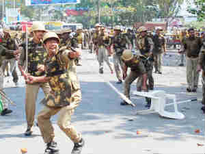 నోయిడాలో అధికారుల నిర్బంధం: హింస, పోలీసు కాల్పులు