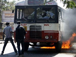 తెలంగాణ బంద్: పలుచోట్ల బస్సులు ధ్వంసం