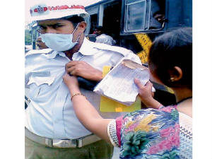 చలానా రాశారని చేయి చేసుకున్న మహిళా మేనేజర్