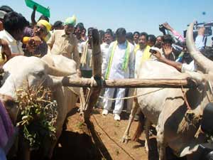 నాలుగో రోజు పాదయాత్ర: నాగలి పట్టిన చంద్రబాబు