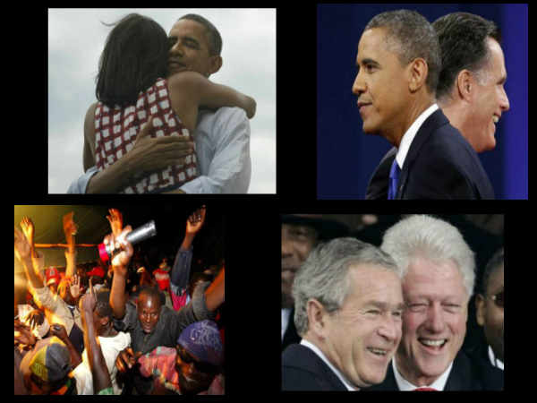 అమెరికాలో ఒబామా గెలిస్తే కెన్యా దేశ ప్రజలు ఆనందం వ్యక్తం చేశారు. ఒబామా తండ్రి గ్రామమైన కెన్యాలోని కొగెలోలో ఫలితాలు తెలుసుకునేందుకు ప్రత్యేకంగా తెర కూడా ఏర్పాటు చేశారు. రాత్రంతా ఆ గ్రామ ప్రజలు ఫలితాల కోసం ఎదురు చూశారు. గెలుపు విషయం తెలియగానే గ్రామ ప్రజలకు పాటలు పాడుతూ చిందేశారు.