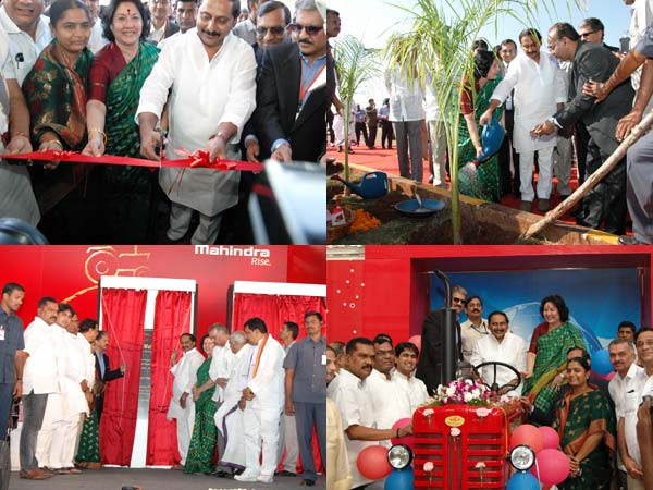 మహింద్రా అండ్ మహింద్రా ట్రాక్టర్ ఉత్పత్తి కంపెనీలో చెట్లకు నీళ్లు పోస్తున్న ముఖ్యమంత్రి కిరణ్ కుమార్ రెడ్డి, చేయి వేసిన గీతారెడ్డి.