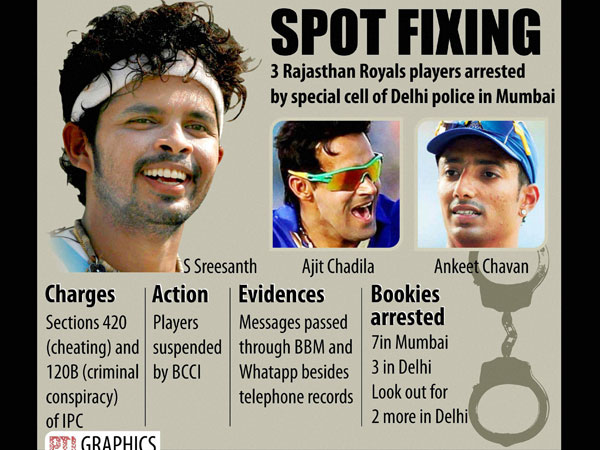 పోలీసులు చెప్పిన వివరాలు ఇలా ఉన్నాయి - మే 5వ తేదీన పూణే వారియర్స్, రాజస్థాన్ రాయల్స్కు మధ్య జరిగిన మ్యాచులో ఫిక్సింగ్కు సంబంధించిన మొదటి సంఘటన వెలుగులోకి వచ్చింది. రెండో విడత బౌలింగులో అజిత్ చండిల 14 పరుగులు ఇచ్చాడు. దానికి ముందు చండిల సైగ చేయడం మరిచిపోయాడు. దీంతో బుక్కీలు బెట్ కట్టలేకపోయారు. అది వివాదానికి దారి తీసింది. డబ్బులు తిరిగి ఇవ్వాలని బుకీలు డిమాండ్ చేశారు. అడ్వాన్స్గా చండిలకు 20 లక్షల రూపాయలు ఇచ్చారు.