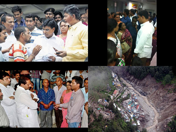 నిన్న ఢిల్లీ వెళ్లిన కిరణ్ వరదలను రాజకీయం చేయవద్దని సూచిస్తే.. సాయం చేసేందుకే వచ్చామని చంద్రబాబు చెప్పారు. టిడిపి తరఫున భక్తులకు వైద్య సహాయం, మందులతో పాటు భక్తులను ప్రత్యేక విమానంలో హైదరాబాద్, విశాఖలకు తరలించి, అక్కడి నుండి టిడిపి నేతల బస్సుల్లోనే ఇళ్లకు చేరవేస్తున్నారు. ఢిల్లీలో ఉన్న చంద్రబాబు జిల్లా పార్టీ ముఖ్య నేతలకు, అధ్యక్షులకు ఫోన్ చేసి బాధితులను ఇళ్లకు చేరే వరకు బాధ్యత వహించాలని చెప్పారు.