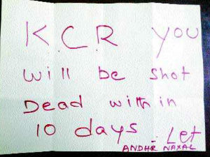 నిన్ను పదిరోజుల్లో చంపేస్తాం: కెసిఆర్కు బెదిరింపు లేఖ