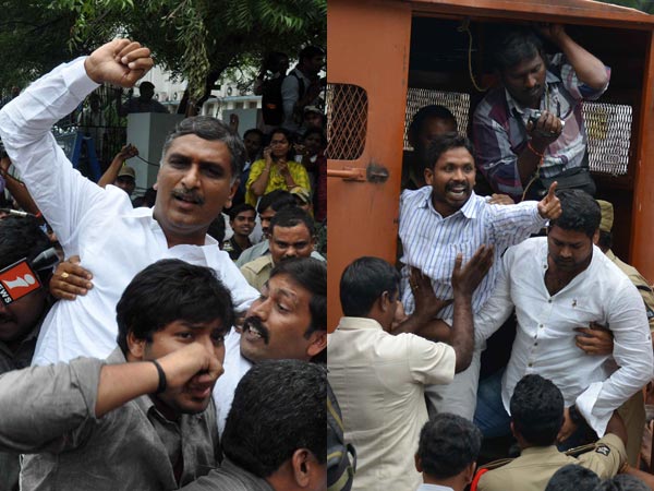 రగులుతున్న హైద్రాబాద్: హరీష్ అరెస్ట్, ఆఫీసుల్లో టెన్షన్