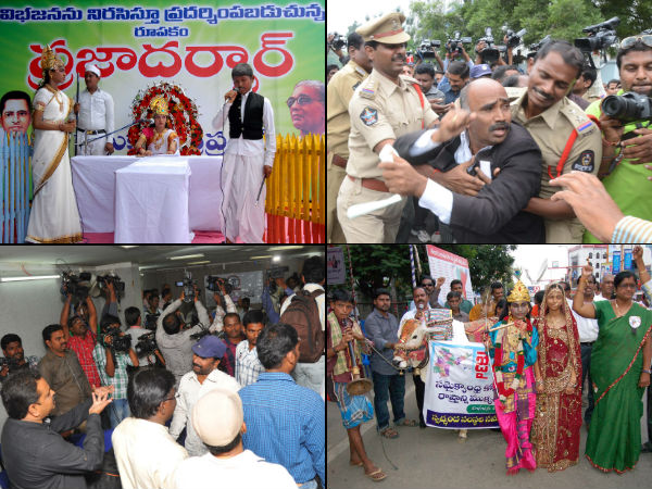 విభజనను నిరసిస్తూ ప్రకాశం జిల్లా ఒంగోలులో చిన్నారులతో ప్రజా దర్భార్ నిర్వహించారు. న్యాయమూర్తులుగా, లాయర్లుగా చిన్నారులు అలరించారు.