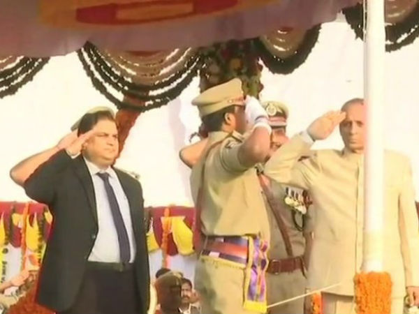 Andhra Pradesh Governor ESL Narasimhan hoists tricolour on #RepublicDay2019 in Vijayawada. pic.twitter.com/8mkUvNPurP