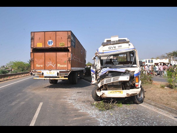స్థానికుల సాయంతో కారులో ఉన్న కానిస్టేబుల్ను 108 వాహనంలో ఎక్కిస్తున్న సమయంలో వెనుక నుంచి వేగంగా వస్తున్న కంటైనర్ లారీ కారు, అంబులెన్స్ను ఢీకొంది. అంబులెన్స్ అవతల రోడ్డులోకి వేగంగా దూసుకెళ్లి ఎదురుగా వస్తున్న మరో లారీని ఢీకొంది. ఈ ప్రమాదం నిమిషాల్లో జరిగిపోయింది. ఎఆర్ హెడ్ కానిస్టేబుల్ మన్గర్ సింగ్ (45), కానిస్టేబుళ్లు కమల్ అహ్మద్ఖాన్ (38), సంజిత్ కుమార్ (38)తోపాటు సహాయ పడేందుకు వచ్చిన సుందరయ్య కాలనీకి చెందిన ఇంటర్మీడియట్ విద్యార్థి మధు ప్రభాకర్ (16), పడారుపల్లికి చెందిన తక్కోలు నాగేశ్వరరావు(40) అక్కడికక్కడే మృతిచెందారు. 108 వాహనం డ్రైవర్ హరిమణి, టెక్నిషియన్ శ్రీనివాసులు, స్థానికుడు నాసర్ తీవ్రంగా గాయపడ్డారు. అగ్రికల్చరల్ ఆఫీసర్, ఇద్దరు కానిస్టేబుళ్లు, కారు డ్రైవర్ మెకానిక్ కోసం బయటకు వెళ్లడంతో ప్రమాదం నుండి బయట పడ్డారు.