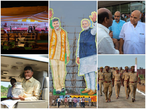 నవ్యాంధ్ర కలల రాజధాని అమరావతి శంకుస్థాపనకు సమయం ఆసన్నమైంది. అమరావతిని ప్రపంచ నగరంగా తీర్చిదిద్దేందుకు ప్రభుత్వం చేస్తున్న ఏర్పాట్లు ప్రజల్లో ఆసక్తిని రేకెత్తించాయి.