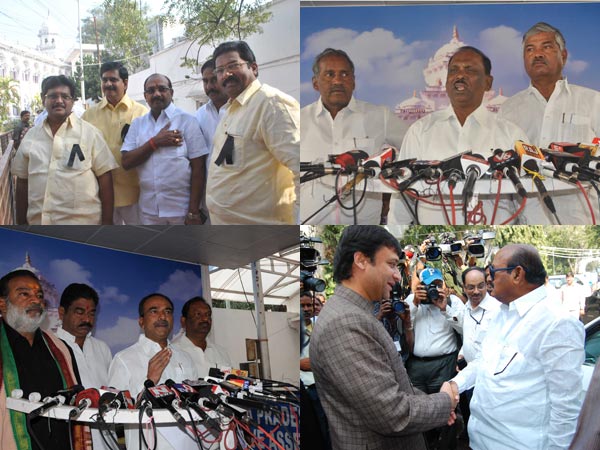 శుక్రవారం తలపెట్టిన బంద్కు మద్దతు ప్రకటించాలని డిమాండ్ చేస్తూ తెలుగుదేశం సీమాంధ్ర శాసనసభ్యులు ప్లకార్డులు ప్రదర్శిస్తూ ఇలా కనిపించారు.