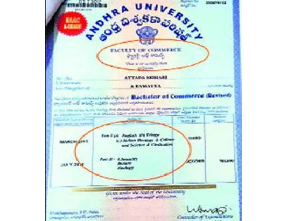 బీఎస్సీ స్టూడెంట్ కి బీకాం సర్టిఫికెట్:ఆంధ్రా యూనివర్శిటీ నిర్వాకం