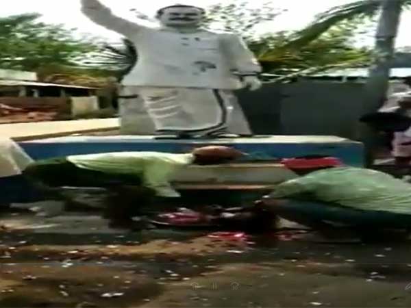 అసెంబ్లీ, లోక్సభ ఎన్నికల్లో తెలుగుదేశం పార్టీ దారుణంగా పరాజయం పాలు కావడం, వైఎస్ఆర్ కాంగ్రెస్ పార్టీ తిరుగులేని మెజారిటీని సాధించడంతో ఆ పార్టీకి చెందిన కార్యకర్తలు కొందరు అత్యుత్సాహాన్ని ప్రదర్శించారు. దివంగత ముఖ్యమంత్రి డాక్టర్ వైఎస్ రాజశేఖర్ రెడ్డి విగ్రహం ఎదురుగా గొర్రెను కోశారు. అక్కడితో ఆగి పోయి ఉంటే బాగుండేది. ఓ అడుగు ముందుకేశారు. గొర్రె రక్తాన్ని ఓ గిన్నెలో పట్టుకుని, వైఎస్ విగ్రహానికి అభిషేకం చేశారు. తలపై నుంచి ధారగా పోశారు. దీనితో విగ్రహం మొత్తం రక్తంతో తడిచింది.