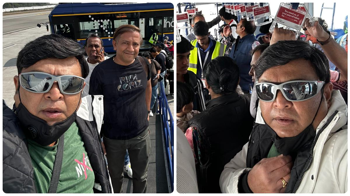 The bus torture chambers of INDIGO airlines are excruciating reminders of the airline monopoly. Thy had loaded us like cattle in a lorry (twice the capacity )with senior citizens , some in wheel chairs struggling to stand ( seen in the back ground ) . I had screamed at the top of… pic.twitter.com/JzcOvsLlul