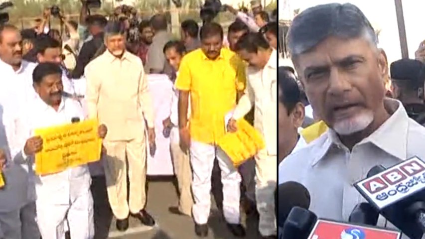 ఏపీ అసెంబ్లీ శీతాకాల సమావేశాల్లో ఆరో రోజు సమావేశం ప్రారంభమైంది. దీనికి ముందుగా అసెంబ్లీ వద్ద ప్రధాన ప్రతిపక్షం టీడీపీ నిరసన చేపట్టింది. ప్రతిపక్ష నేత చంద్రబాబు పార్టీ నేతలతో కలిసి ప్రభుత్వం అమలు చేస్తున్న రివర్స్ టెండరింగ్ మీద నిరసన నిర్వహించారు. వెనక్కు నడుస్తూ పాలన రివర్స్ లో నడుస్తోందని నినదించారు.