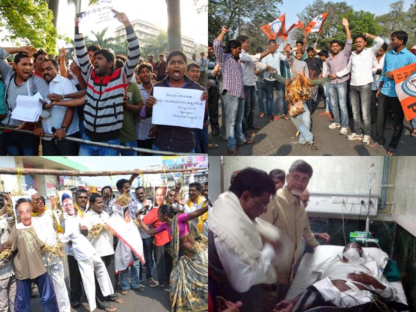 ఆంధ్రప్రదేశ్ పునర్వ్యవస్థీకరణ (తెలంగాణ ముసాయిదా) బిల్లును లోకసభలో ప్రవేశ పెట్టిన నేపథ్యంలో సీమాంధ్రలో నిరసన జ్వాలలు కనిపించాయి. ఆందోళన చేస్తున్న విద్యార్థులు.