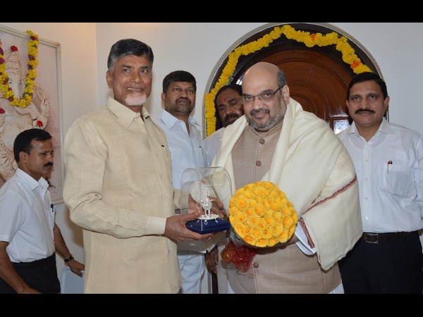 హైదరాబాద్: తెలుగుదేశం పార్టీ అధ్యక్షులు, ఆంధ్రప్రదేశ్ ముఖ్యమంత్రి నారా చంద్రబాబు నాయుడుతో భారతీయ జనతా పార్టీ జాతీయ అధ్యక్షులు అమిత్ షా శుక్రవారం ఉదయం భేటీ అయ్యారు. వీరిద్దరు తాజా రాజకీయ పరిస్థితుల పైన తమ సమావేశంలో చర్చించారని సమాచారం. ఇద్దరు కలసి అల్పాహార విందులో పాల్గొన్నారు.