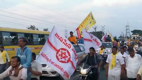 చంద్రబాబు టూర్ లో జనసేన జెండాలు