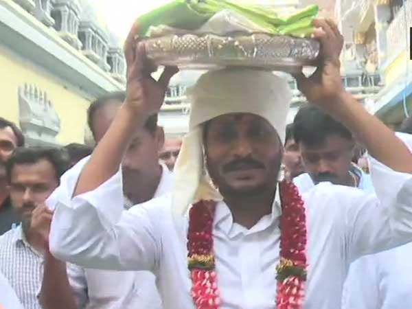 Andhra Pradesh: YSRCP chief and CM designate YS Jagan Mohan Reddy offered prayers at Kanaka Durga Temple in Vijayawada today. He will be sworn-in as the Chief Minister tomorrow. pic.twitter.com/3nZxAGrgcj