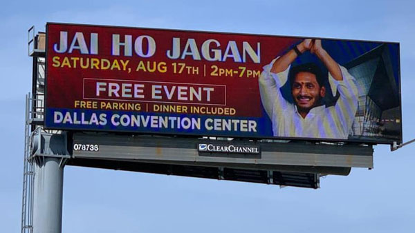 అమెరికాలో వైఎస్ జగన్ మేనియా: ముఖ్యమంత్రి పేరు మీద వెలిసిన హోర్డింగులు