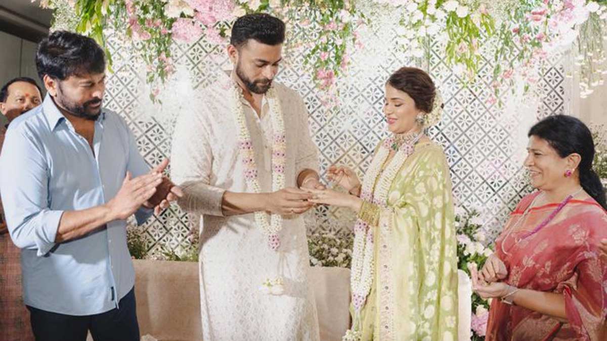 ఇక ఈ వేడుకల్లో చిరంజీవి, ఆయన సతీమణి సురేఖ సమక్షంలో లావణ్య త్రిపాఠీ వరుణ్ ఎంగేజ్మెంట్ జరిగింది. వరుణ్ తేజ్ పెదనాన్న చిరంజీవి, పెద్దమ్మ సురేఖల సమక్షంలో వరుణ్ తేజ్ లావణ్య త్రిపాఠి కి ఎంగేజ్మెంట్ రింగ్ తొడిగాడు. ఇక ఆ ఫోటోలను ట్విట్టర్లో ట్వీట్ చేసి అందరితో పంచుకున్న మెగాస్టార్ చిరంజీవి వారికి సోషల్ మీడియా వేదికగా శుభాకాంక్షలు తెలిపారు.