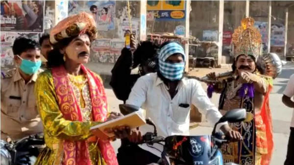 కొన్ని చోట్ల పోలీసులు పాటలతో కరోనావైరస్ మహమ్మారి గురించి ప్రజల్లో అవగాహన తీసుకొస్తుండగా మరికొన్ని చోట్ల ప్రజలకు చేతులెత్తి నమస్కరిస్తూ బయటకు రావొద్దని వేడుకుంటున్నారు. ఇలాంటిదే ఒక ఘటన కర్నూలులో కనిపించింది. లాక్డౌన్ ఆదేశాలను ఉల్లంఘిస్తూ రోడ్లపైకి యదేచ్ఛగా వస్తున్న ప్రజలకు పోలీసులు వినూత్న పద్దతిలో బయటకు రావొద్దని చెప్పారు. అప్పటి వరకు ప్రజలు రోడ్డుపై కనిపిస్తే లాఠీలకు పనిచెప్పిన పోలీసులు... ఇప్పుడు వివిధ వేషధారణలతో ప్రజలను బయటకు రావొద్దని అభ్యర్థిస్తున్నారు. తాజాగా డోన్ పోలీసులు యమధర్మరాజు మరియు చిత్రగుప్త గెటప్లు ధరించి రోడ్డుపైకొచ్చిన ప్రజల్లో అవగాహన కల్పిస్తున్నారు.