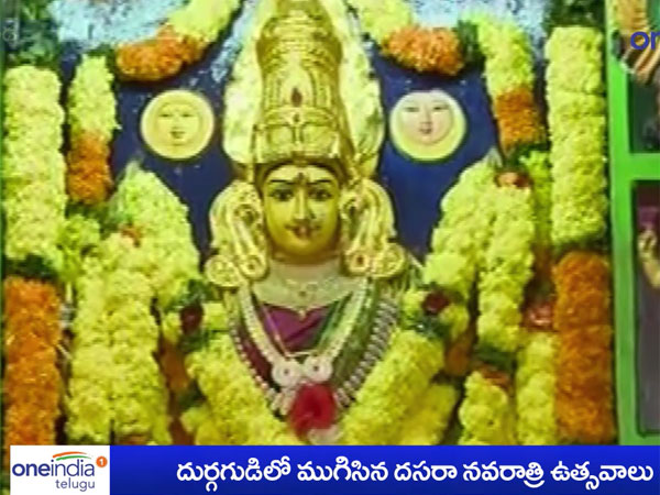 విజయవాడ: విజయవాడ దుర్గ గుడిలో దసరా ఉత్సవాలు మంగళవారంతో ముగిశాయి. కనకదుర్గమ్మ మంగళవారం నాడు రాజరాజేశ్వరి దేవిగా దర్శనం ఇచ్చింది. తెల్లవారుజామున మూడు గంటల నుంచే భక్తులు పెద్ద సంఖ్యలో భక్తులు అమ్మవారిని దర్శించుకున్నారు. భక్తుల రద్దీ దృష్ట్యా రూ.300, రూ.500 టిక్కెట్ల విక్రయాలు నిలిపివేశారు. అంతరాలయ ప్రవేశం రద్దు చేశారు. భక్తులందర్నీ మండపం ద్వారా దర్శించుకోనిచ్చారు.